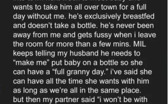 When my baby boy was just five weeks old, my mother-in-law asked for a full day alone with him. She insisted I stop breastfeeding and switch to formula so she …