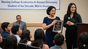 “She maintained one of our highest GPAs,” the dean continued. “Please help me honor Maria Alvarez.”