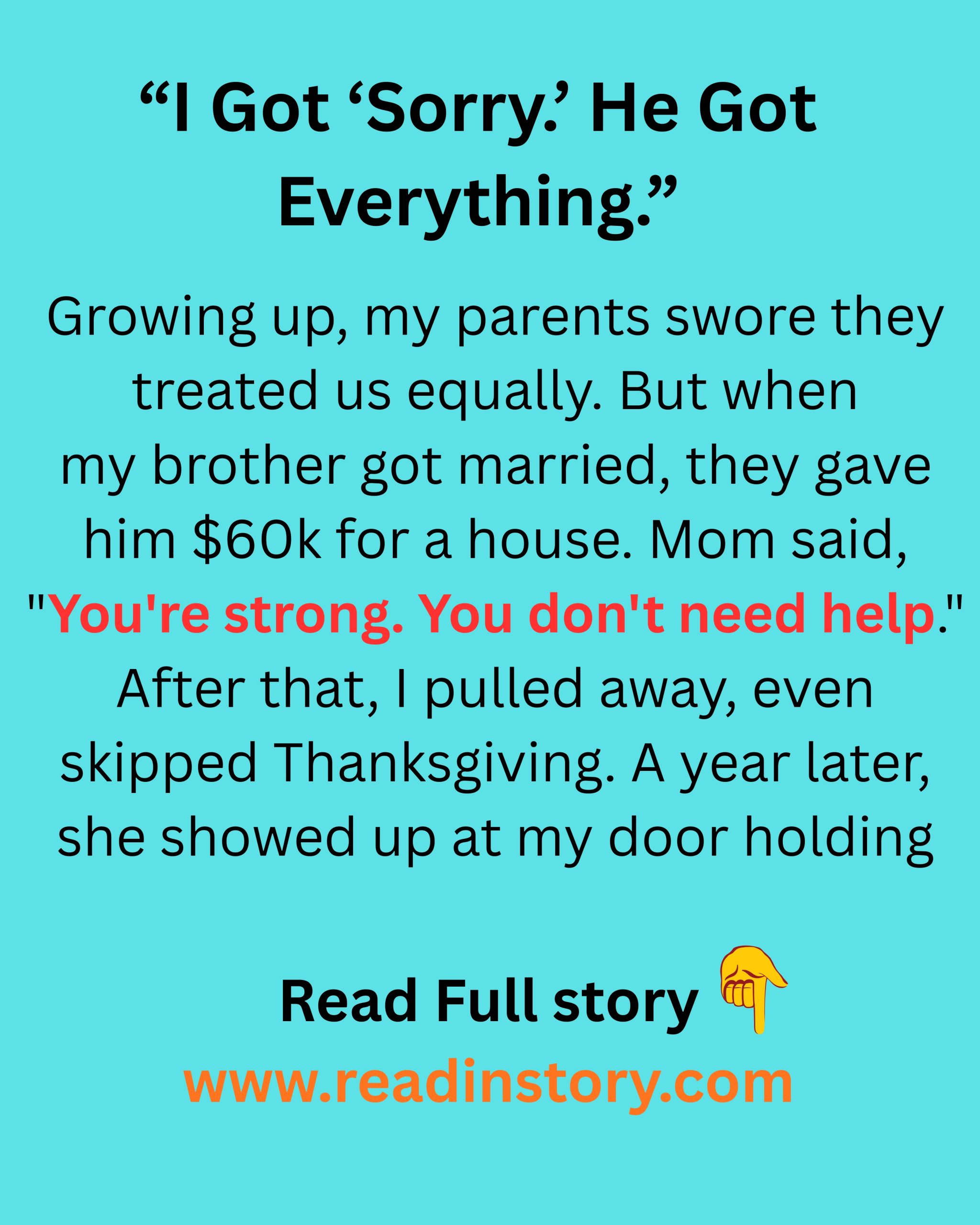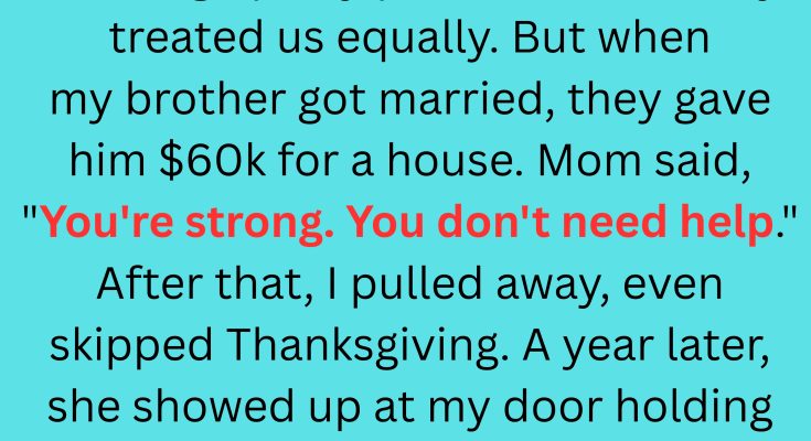 When I found out they’d paid for his house, I was stunned. I asked them why. They said he “needed it more.” That I was “doing fine.” But I wasn’t fine. I was struggling, just quietly. I didn’t have the luxury of asking for help because I knew it wouldn’t come.