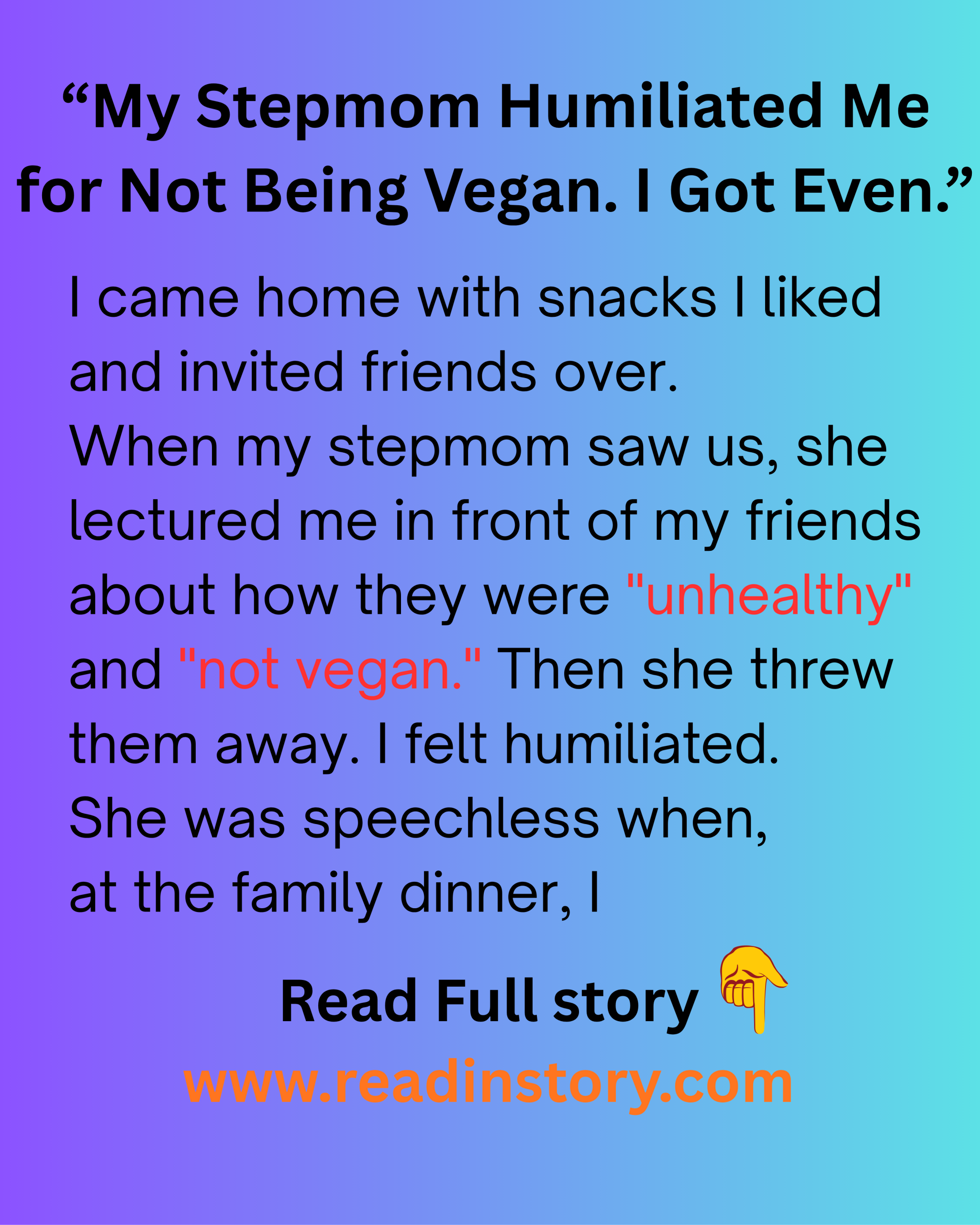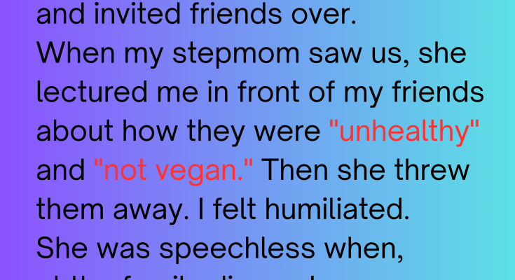 I had a few friends over for a casual lunch. We ordered takeout—some of us got veggie dishes, others didn’t. It was relaxed, fun, until my stepmom walked in. She saw the food and launched into a loud, dramatic rant about how disgusting meat is. She called me “heartless” in front of everyone. My friends were stunned. I was mortified.