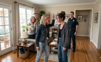 Derek shouted. The operator on my phone was yelling for me to stay where I was. Boots thundered up the stairs. Then everything happened at once—police in the hallway, Derek dragged backward, my mother’s boyfriend cursing, Nate with both hands raised, me shaking so badly I had to sit on the floor.