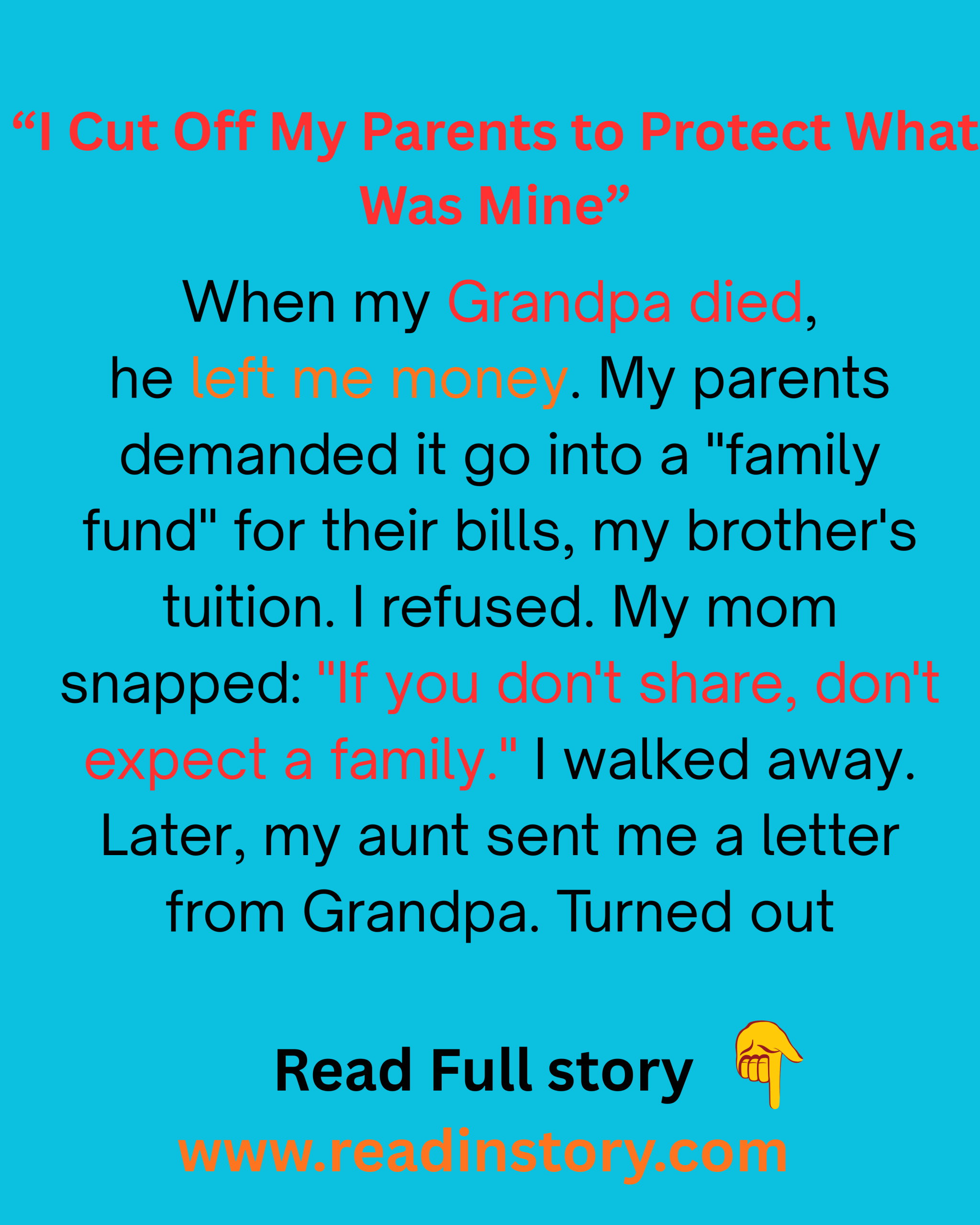 At first, it was subtle. “Let us help you manage it.” “You’re young, you’ll make mistakes.” “We know what Grandpa would’ve wanted.” I tried to believe they meant well. But then they started making decisions without me—moving funds, investing in things I never agreed to, even using some of it for their own expenses.