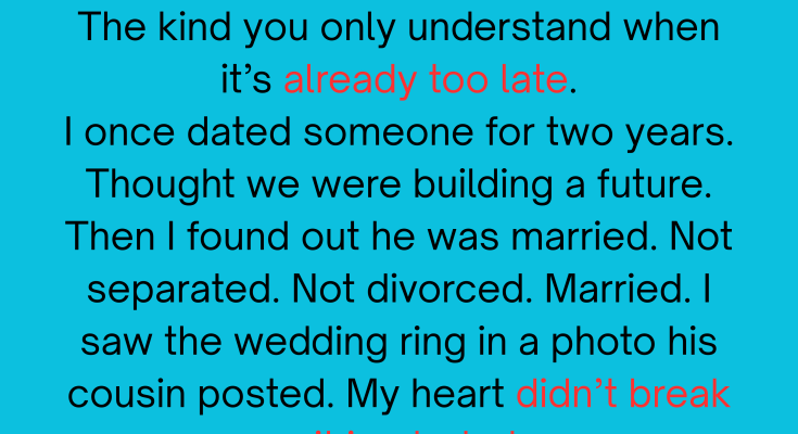 I once dated someone for two years. Thought we were building a future. Then I found out he was married. Not separated. Not divorced. Married. I saw the wedding ring in a photo his cousin posted. My heart didn’t break—it imploded.