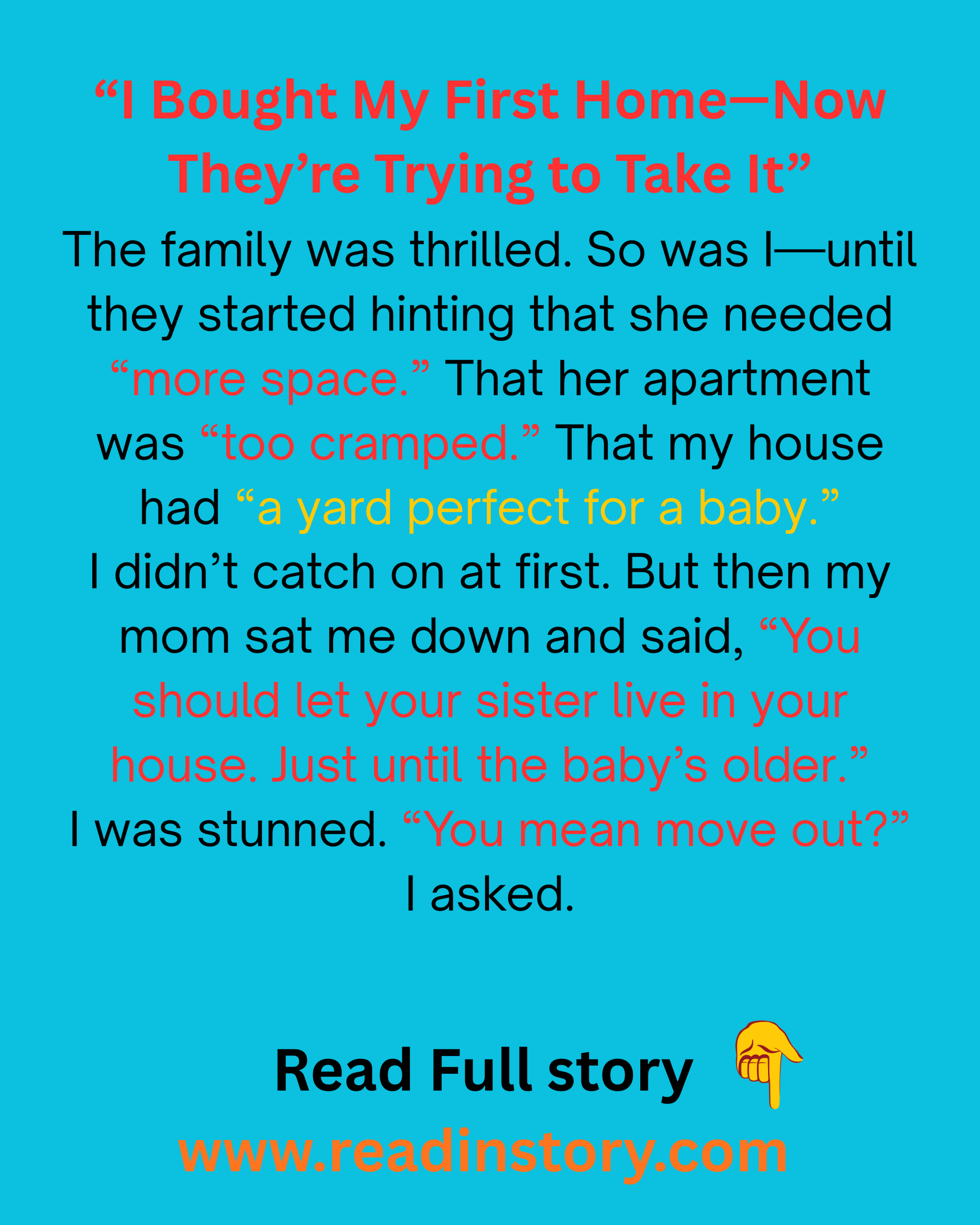 The family was thrilled. So was I—until they started hinting that she needed “more space.” That her apartment was “too cramped.” That my house had “a yard perfect for a baby.”