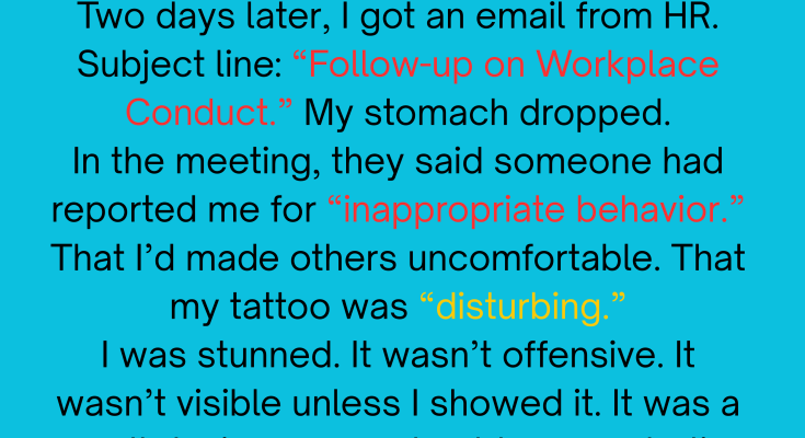 It started as a casual conversation in the break room. I’d just gotten a tattoo—my first one—and I was excited. It meant something personal to me. So when my coworkers asked how my weekend went, I told them. I even showed a photo on my phone.