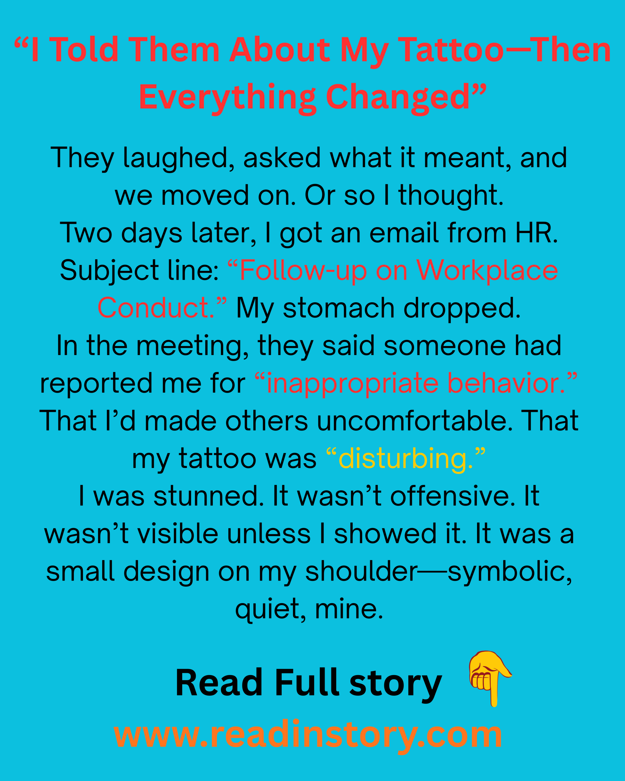 Because my body is not a disruption. My story is not a threat. And if a tattoo can shake a workplace, maybe the problem isn’t ink—it’s intolerance.