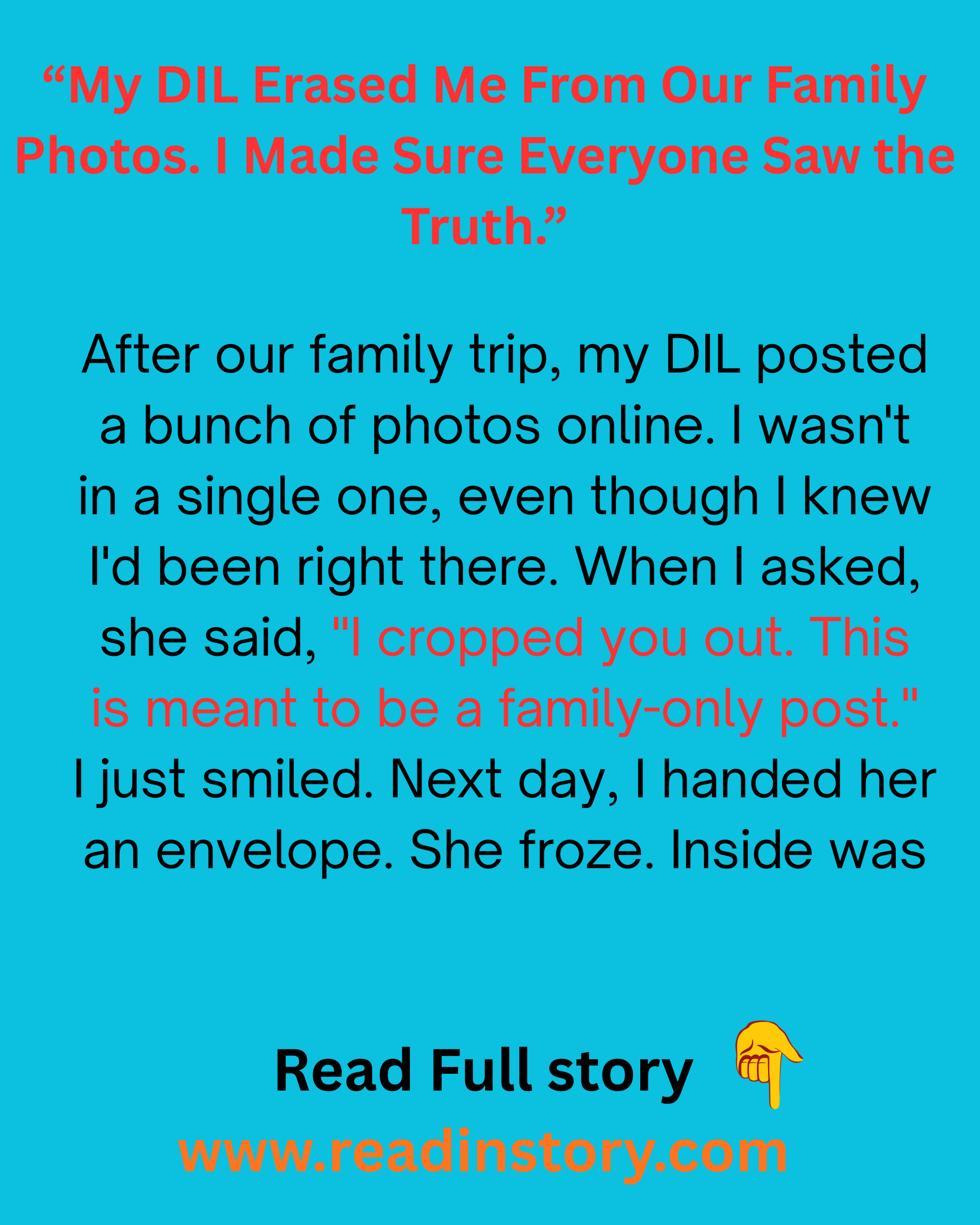 Friends commented. Family noticed. My son called, confused. I told him the truth: I’m tired of being erased. I’m part of this family, whether she likes it or not.