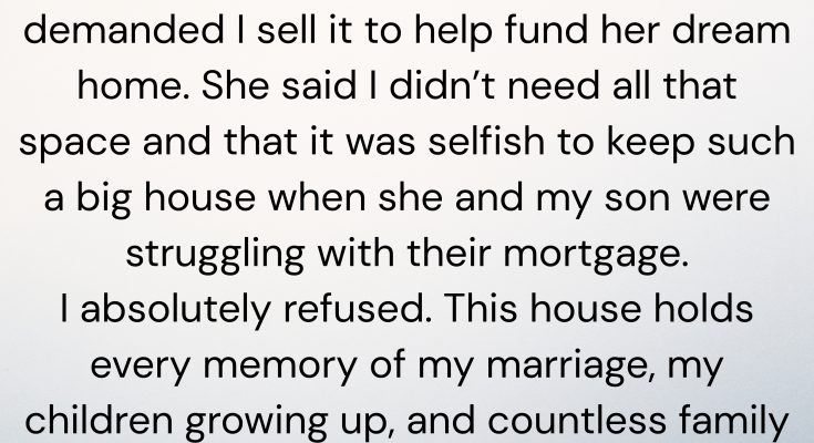 There is room for compromise without erasure. There is room for generosity that doesn’t demand the disappearance of someone else’s history. I will help them, yes—I love my son and I want him to have a home. But I will not sell the only house that contains the thread of my life just so someone else’s dream has a faster start.